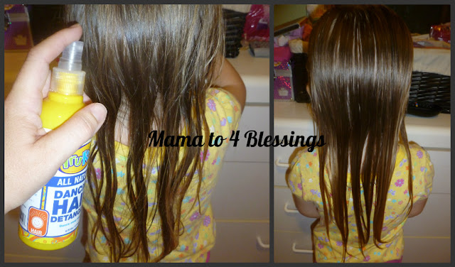 I have never cut the length of back of my daughter’s hair, she refuses to allow me to. Everyday is a battle brushing her hair and everyday I tell her I am going to cut her hair because she cries and says it hurts. So after I wash her hair I use the Dancing Detangler, spritzing her hair on the sides and back and then come it through and I noticed that there are a lot less tangles and tears!