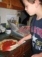 Last night was broccoli cheese pizza. JJ was my little sous chef! Very easy & fun!