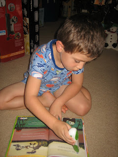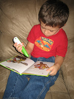JJ gor a Leap Frog Tag reader from his Grandpa for Christmas. Knowing he was going to get this I told my mom & she got him some books & so did my husband & myself for his new reading system. I have to say he have quite a few Leap Frog learning systems but this by far is the best! You put the reading pen over the words & it reads the books to you as well as the books have games you play with the reading pen that you gain rewards then you connect them to your leapfrog on-line account. JJ loves this system, some of the books have several words in them that he can already read. This is a fun way to learn how to read!