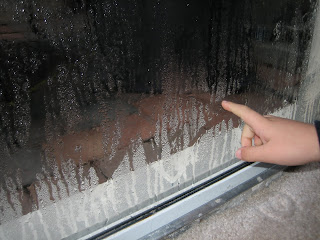 It doesn’t get very cold where we live but it has been lately. We took advantage of this cold weather, our glass sliding doors were all frosted up from the cold. JJ practiced his reading / spelling words by writting on the glass door.
