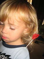 1st he got the lollipop stuck in his hair, then after rinising the hair off of it,