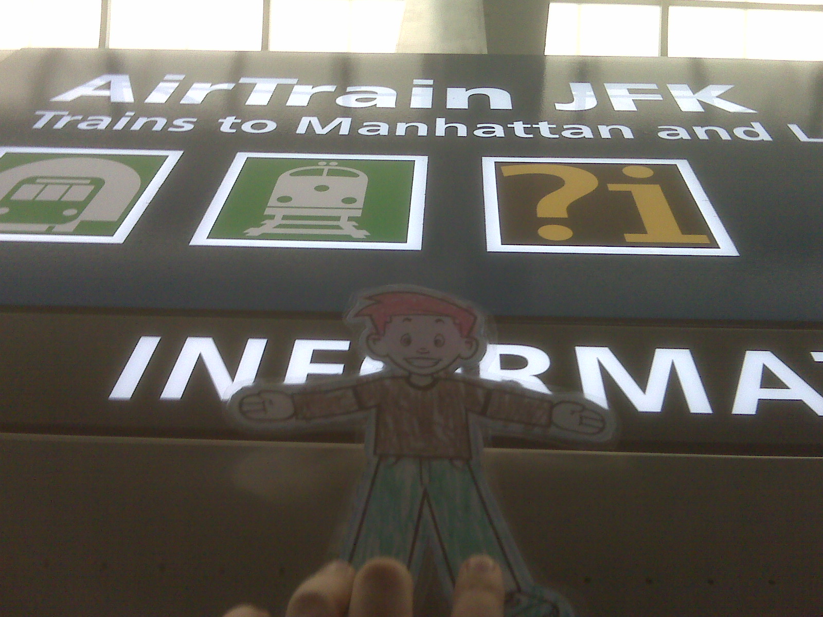 My husband got back from China from a business trip, (3-13 to 3-27). We had him take JJ’s Flat Stanley with! Here are some pictures of Flat Stanely in China & at the lay over on the way to China at JFK (New York City) airport! The pics are not that clear – my husband took them on his cell phone.