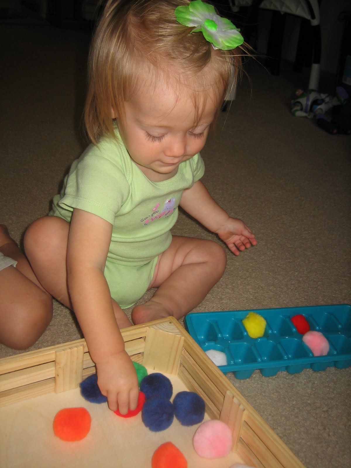Those pics are adorable! I need to find pom poms that big for Baby N to experiment with. fun!