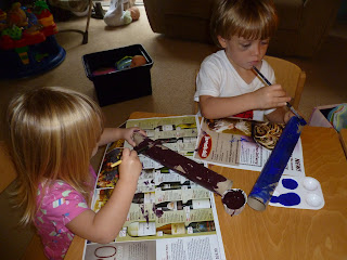 While my husband takes my older boys to karate on Sunday evenings I decided to have craft time with my 2 year old artsy daughter. We will read a book and then doing a craft in relation to the story we read. This particular time my 4 year old did not go to karate, he stayed home and did the craft with us.
