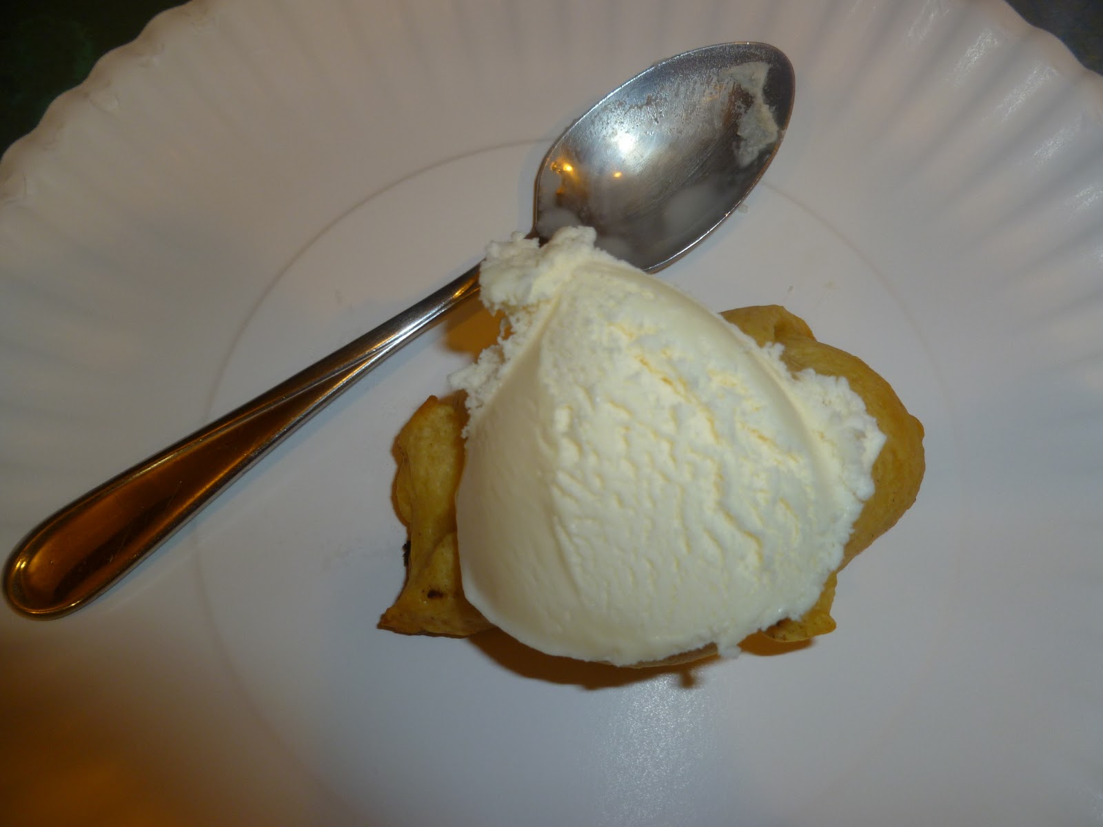 Ingredients used to make mini pie wraps: Delmonte Diced Peaches, Crescent rolls, cinnamon and vanilla ice cream.