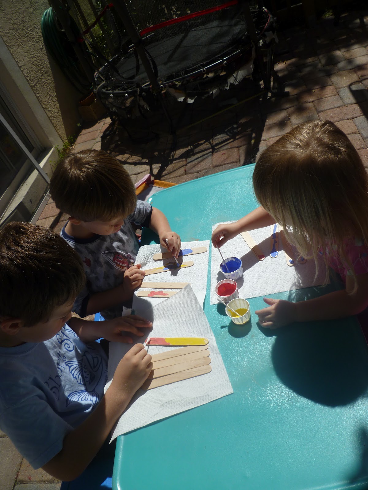The kids painted the popsicle sticks with Q-Tips (less mess to clean up!)