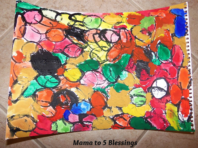 We had some friends over this week for a play date while they were here we did an toilet paper tube inspired painting!