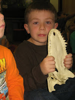 Live animals, skulls, models, skeletons, and shells are used and discussed during the program that covers reptile characteristics, adaptations, development, conservation, and common species. They got to hold several turtle skulls, snake skin, etc. Very hands on!