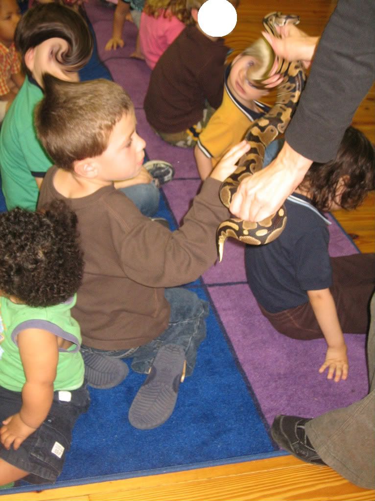 JJ petting a snake