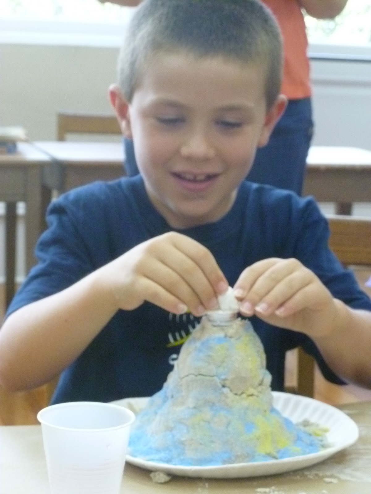 Then once the tissue paper disintegrates the volcano will start to spew lava!